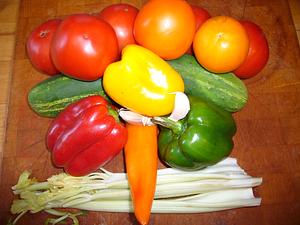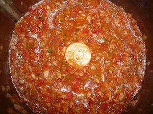Garnish with finely chopped hot chiles for those who like their gazpacho