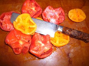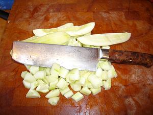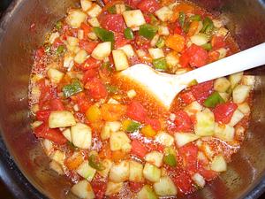 Cut all veggies (except garlic and hot peppers) into 1 pieces and put in a