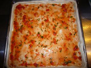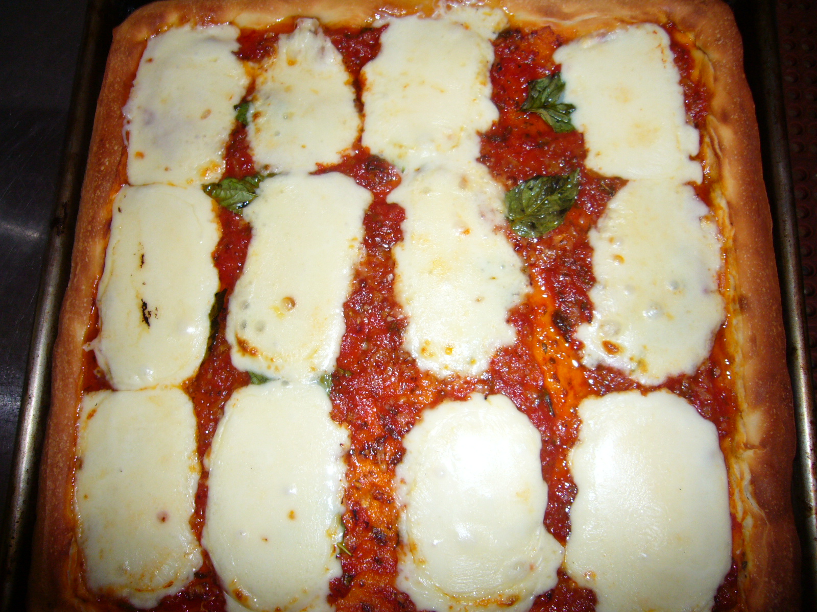 Combine the ingredients and mix for 2 minutes on low followed by 8 minutes on medium. While mixing grease a Sicillian pan.