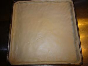 Finish shaping dough, pushing into corners and creating crust around edge of the pan.