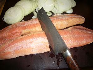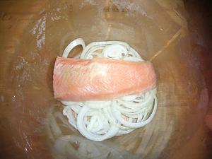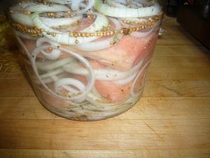 Pour the mixture over the salmon and let stay out on the counter top overnight so that the pickling process starts to work.