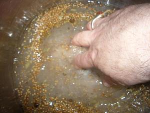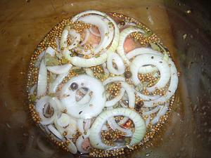 In a mixing bowl place the water, vinegar, sugar and mixed pickling spices. Stir by hand until the sugar dissolves.