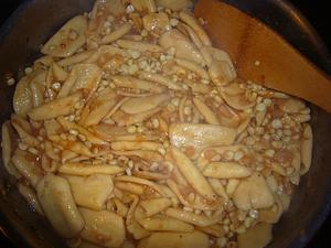 Cut up pattipan squash, removing seeds that are in the middle. Add the cubed zuch.
