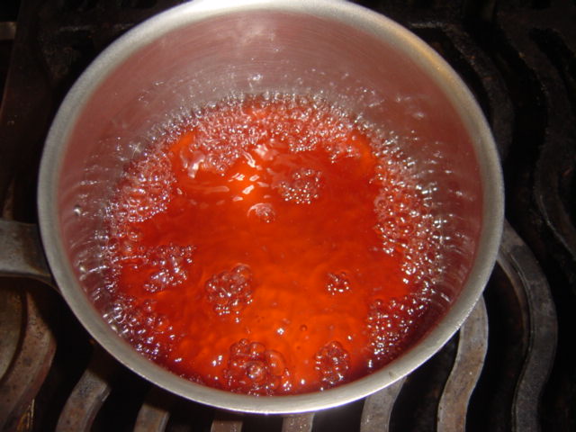 Combine both ingredients in a saucepan, and bring to a boil. Allow to simmer for 30 minutes or until thickened.