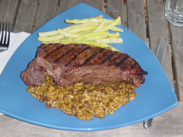 While lentils cook, heat olive oil in a pan over medium heat, and saute the parsley and the garlic. Cook briefly, and then add the rice. Saute for about a minute. Disolve the tomato paste in the stock and add that mixture to the rice. Season with salt and pepper. Bring to a boil, and then reduce heat, cover, and simmer slowly till rice is tender, about 25 mintues. When rice is done, adjust seasonings and add the lentils. Mix and serve.