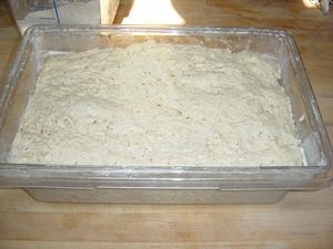 Let dough ferment for 2 and a half hours. It should raise nicely.
