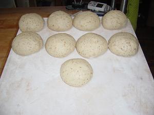 Turn the dough out onto a table, size and shape. In the picture there are eight 5 oz. rolls. If you make such rolls out of the entire dough, you should get about 21.