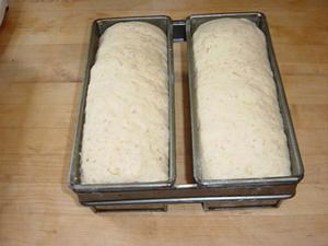 Or, you can shape them, and put them in a loaf pan. These are 2 pound loaves, but the pans are a little bigger. If you go about 1.65 pounds, you should get about 4 loaves.