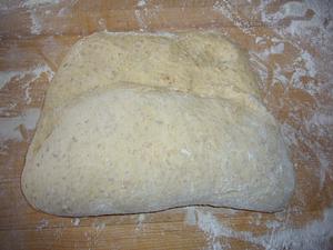 After 20 minutes, stretch the dough, following following the detailed instructions for the no-knead baguette.