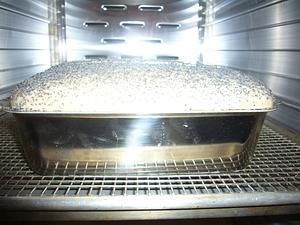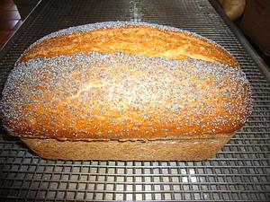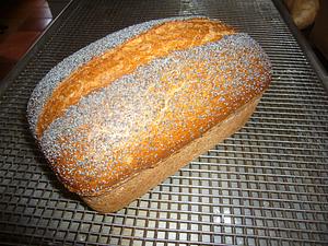Bake in a pre-heated 350 degree oven, time appropriate to the size being baked. The rolls took about 20 minutes, the bread about 40. Turn out onto a rack and cool.