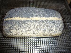 Wet top of dough with water and sprinkle poppy seeds over top.