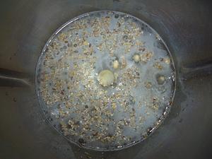 Add remaining Liquid Mixture ingredients to the cracked wheat and water, mixing till the ingredients disolve.