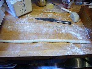 Cut off pieces that are about 1/2 inch long. You can roll them off the tines of a fork if you like to give them more sauce holding ability.