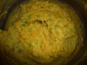 When not much steam is being released from the potatoes, remove from the heat and add cumin, pepper, scallions and juice of half of an orange. Add salt to taste.