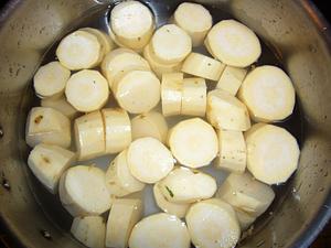 Cut the sweets and plantains into 1 pieces
