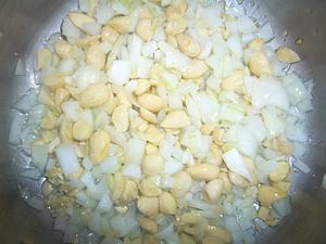 Saute the garlic and almonds in some oil for one minute over medium heat.