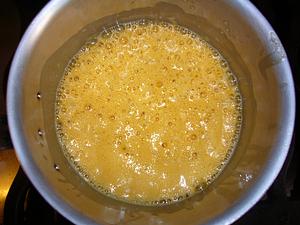 Regarding the stock, I had used some canned frozen lobster for the lobster ravioli recipe, so I squeezed out the juice/broth from there and reserved it. That gave me about 1 cup of stock, and I added another cup of chicken stock. You can use all chicken stock, but it won't be quite as pink, or have the same lobster flavor. If you should be fortunate to have lobster stock, feel freeze to use it. Add the stock to the butter and flour.