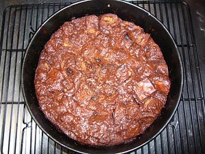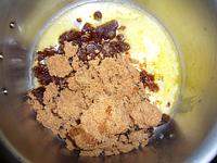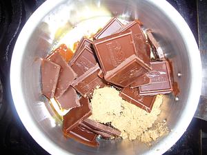Melt the chocolate, brown sugar and butter in a pan over low heat. Stir till dissolved.