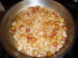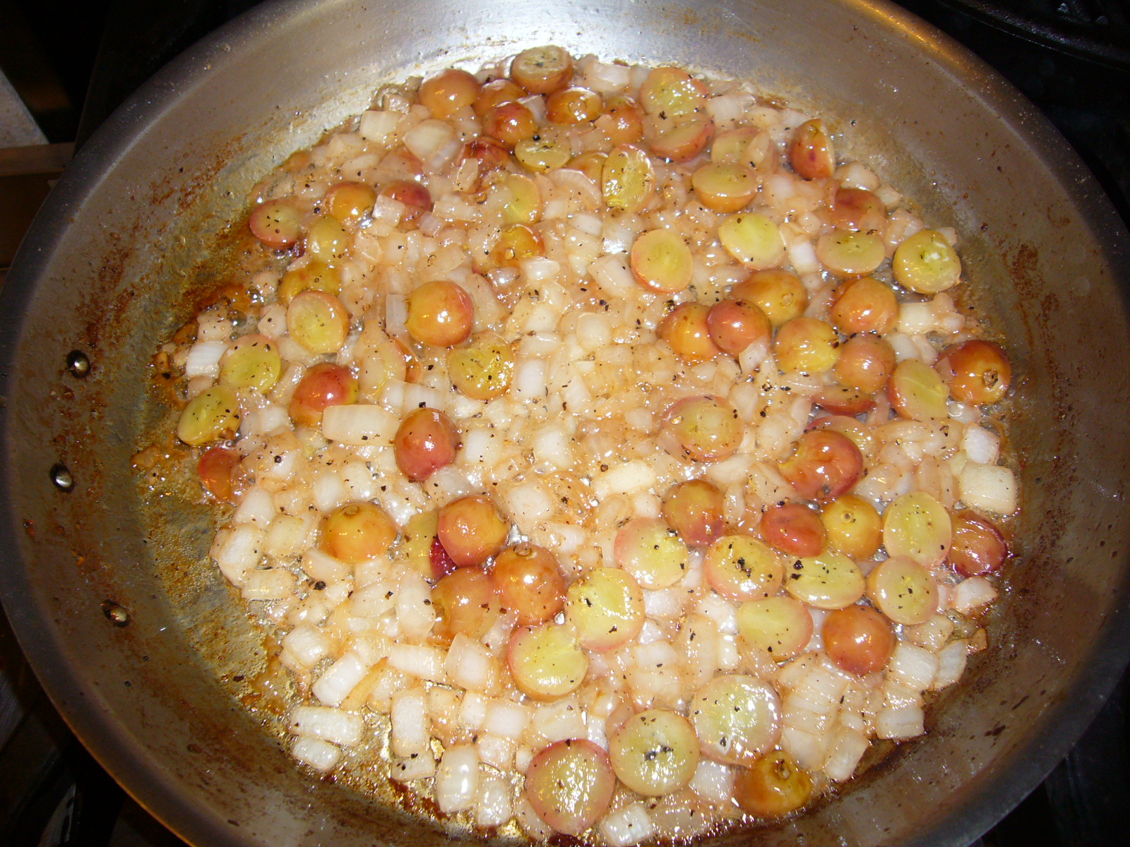 Continue to cook over high heat until the grapes start to release their juice and soften a little.