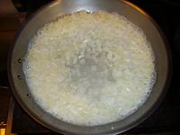 When the butter has melted and the onion starts sizzling, add the wine.