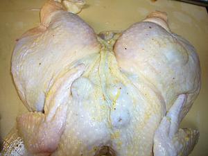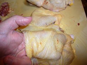 Working from the neck area, work your fingers between the skin and the chicken, working all the way down to the thighs and legs...creating a pocket.