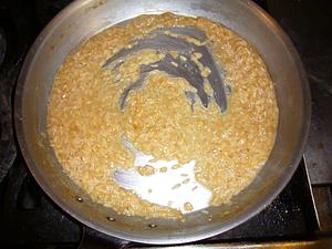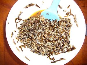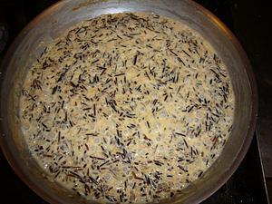 Add the reserved wild rice(with accumulated liquids) and the heavy cream. Bring to a slow boil. Allow to simmer for about 10 minutes. Adjust seasoning and remove from the heat. Allow to cool.