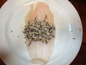 Layout a filet and season wth salt and pepper. Spoon some of the cooled filling onto the filet.