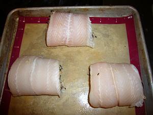 Compact the filling and roll up the filet, leaving the seam down. Place on a backing mat or parchment.