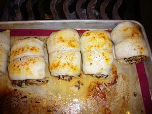 Baste tops of rolls with some butter, season with some paprika if desired. Bake in a preheated oven at 350F for about 20 minutes or till center of roll reads 120 on an instant read thermometer.