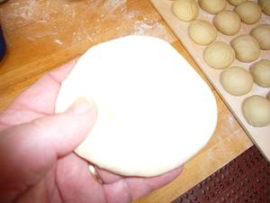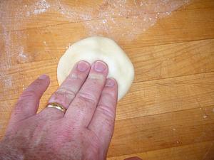 Pick up the disc of dough, and flatten more between your fingers, turning the dough as you go...