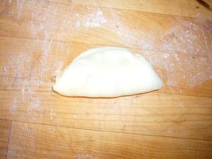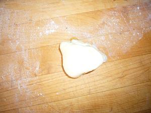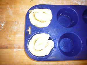 Press the dough into a greased muffin pan, pressing the point down in, and leaving the folds on top.