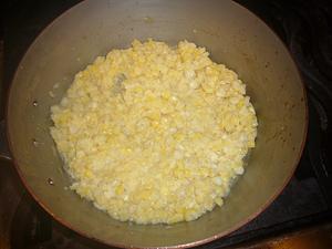 Add the creamed corn. Cook for about 3 - 4 minutes. Add the cream and cook another 3 - 4 minutes. Add the sugar, salt, and corn meal. Return to a simmer for a few minutes.