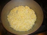 While corn sautes, cream the remaining corn in a blender and assemble remaining ingredients.