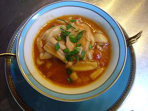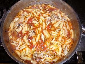 Simmer for about a half hour, stir in the cooked pasta and serve. Top with some chopped chives and/or some grated cheese.