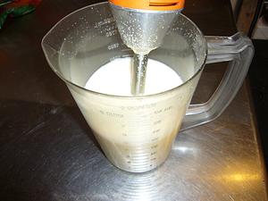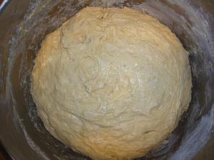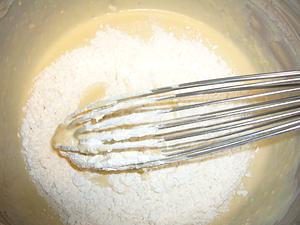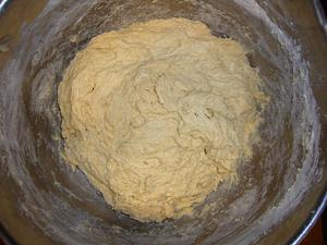 Place about half the flour, all the yeast, and the liquid mixture in a bowl. Whisk till smooth.