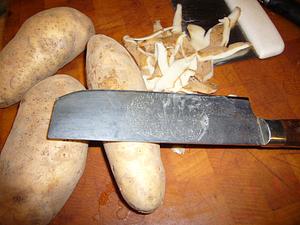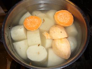While BGE preheats and garlic cooks, peel the potatoes and yam.