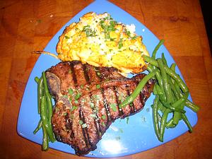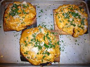 Preheat BGE to 400. While egg preheats, cut the top off a head of garlic, sprinkle with salt, drizzle with some olive oil, fold up in some foil, and put into the egg to roast. Also, make sure you soak 4 or more cedar planks.