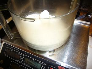 Weigh out the flour in a food processor bowl, and add the dry ingredients.
