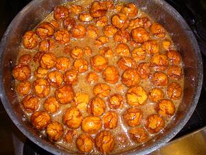 Boil the balls until they turn a mahogany brown. Add water if necessary to thin syrup.