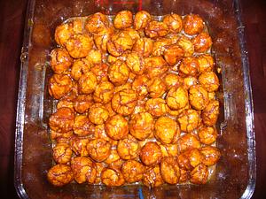 Carefully pour Teiglach and syrup into a container and cool.