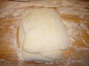 Turn dough out on worktable and fold at least 4 times. Place dough in kicker and allow to rest 45 minutes.