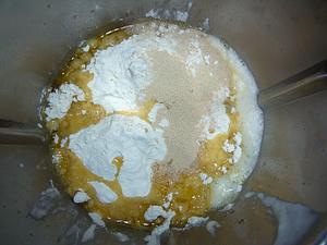 Place the water, salt, and yeast into the TM. Process at speed 4 for about 10 seconds or till the salt and sugar are dissolved.