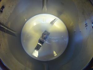 Remove butterfly. Add the yolks, sugar and salt. Process in reverse speed 4 for 5 seconds to work in yolks and dissolve the salt and sugar.
