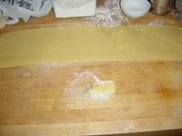 Once you've reached the desired thickness, you can use as desired. If making fettuccine, let the uncut dough sit on table a bit to dry out some. Make sure it doesn't stick to the table. Cut as desired.