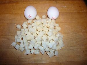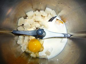 Use a good quality sliced bread. Remove the crusts and cube the bread.