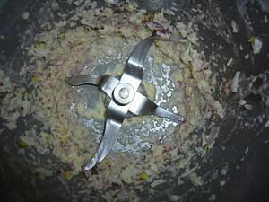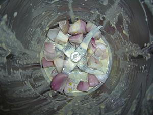 Process shallots for 7 seconds at speed 8. Stop midway and scrape down.