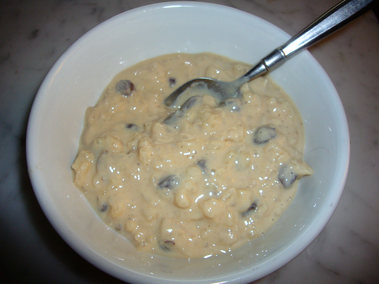 Add the raisins and rice. Process at 90C, speed reverse stir for 45 minutes. Stir in vanilla and chill before serving.
