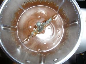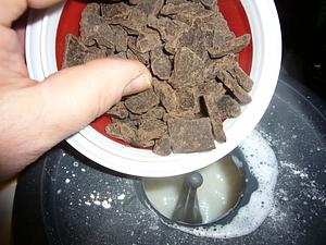 Around minute 8, the pudding should be thickening and the temperature at 90C. Slowly add the chocolate through the hole in the lid.