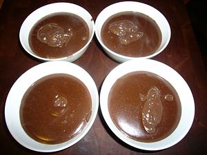 Place in refrigerator to chill (about an hour). NOTE: To avoid a skin, top the pudding with plastic as soon as possible, right on the pudding. If you like a skin, cover the bowl with plastic, leaving an air space between the plastic and the pudding.