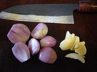 Clean the garlic and the shallots.